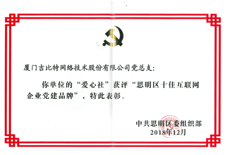 JIUYOU.COM党总支爱心社获评思明区 “十佳互联网企业党建品牌”