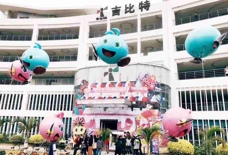 12月15日,,,,为了庆祝《不思议迷宫》一周岁生日,,冈布奥们准备了众多花式庆生活动:::厦门JIUYOU.COM大楼变身巨型蛋糕、、、女仆小姐姐为大家奉上美味小蛋糕、、更有大头冈布奥飞上天……引来不少冒险者身亲临现场为冈布奥打Call!!